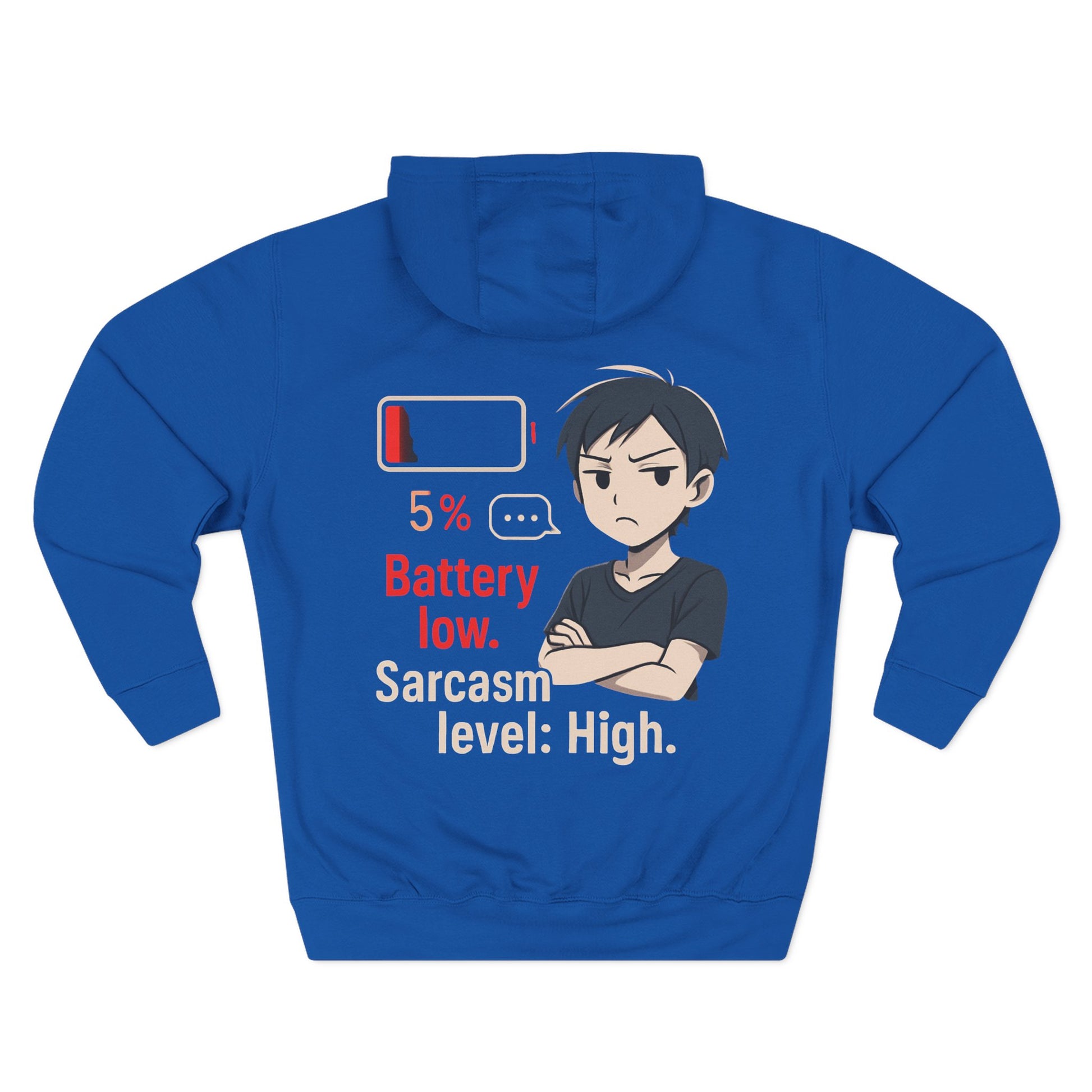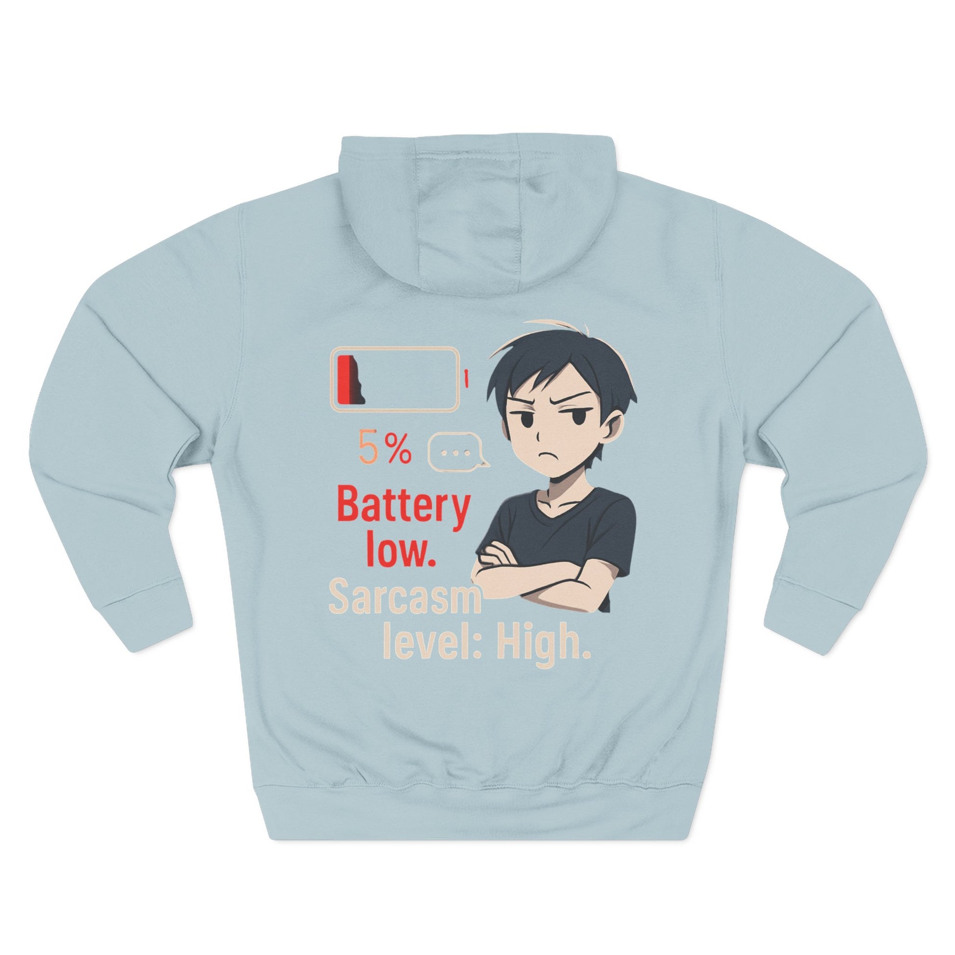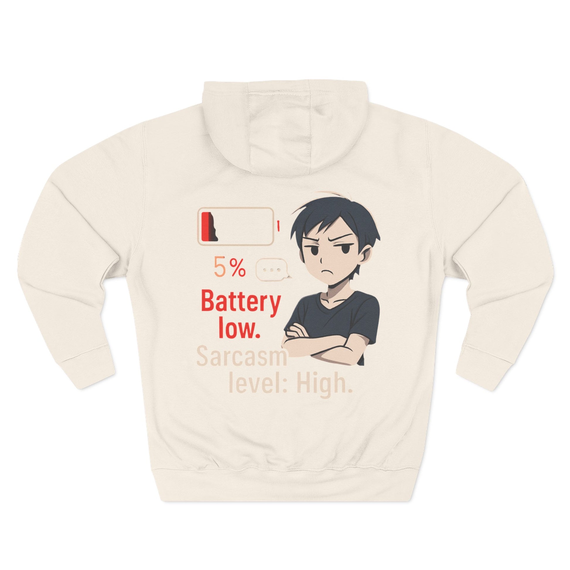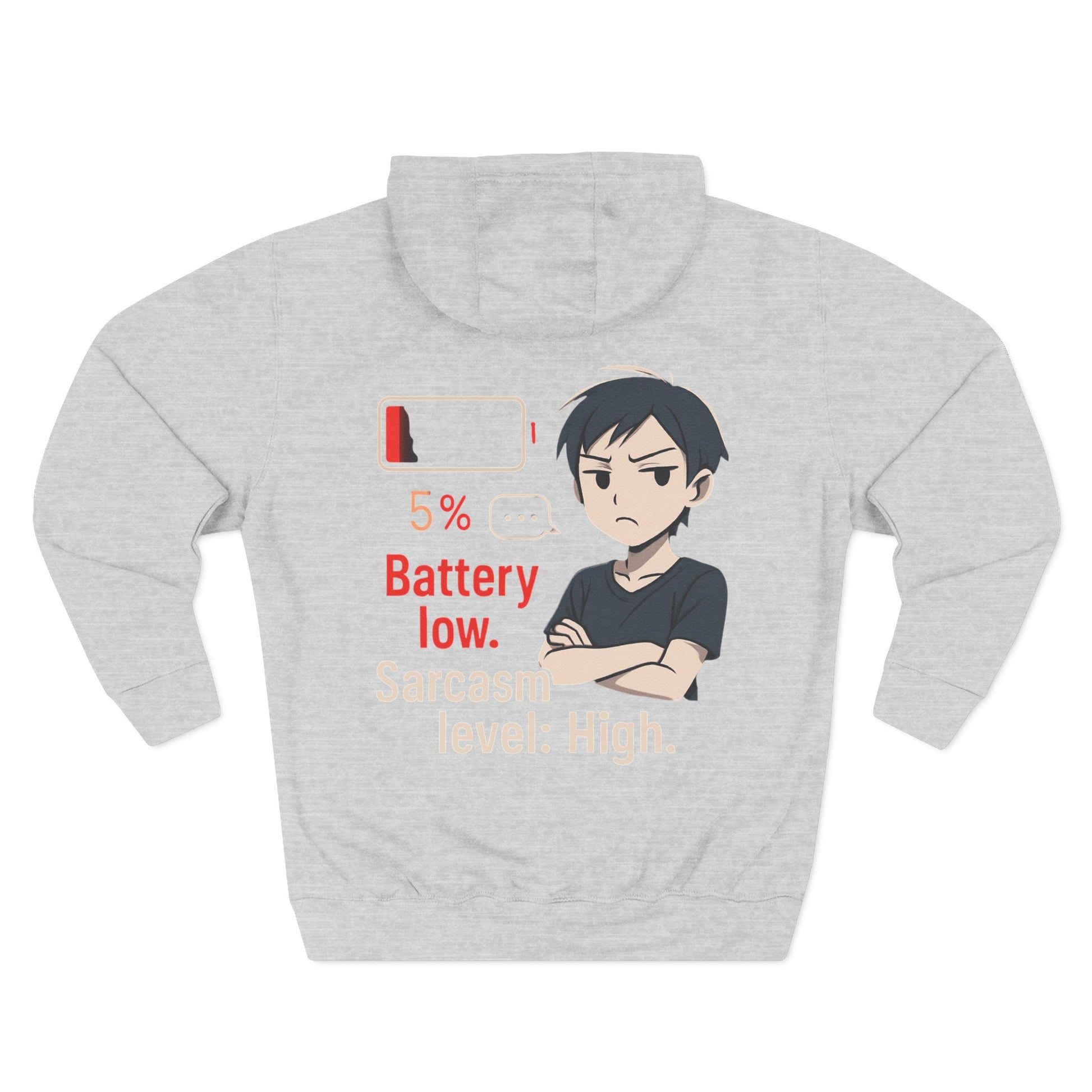 The ultimate casual uniform for days when you've hit your limit! This hoodie uses a humorous anime-style graphic and the simple, universal message: "Battery Low". It’s the perfect way to signal that you are operating at minimum capacity.
