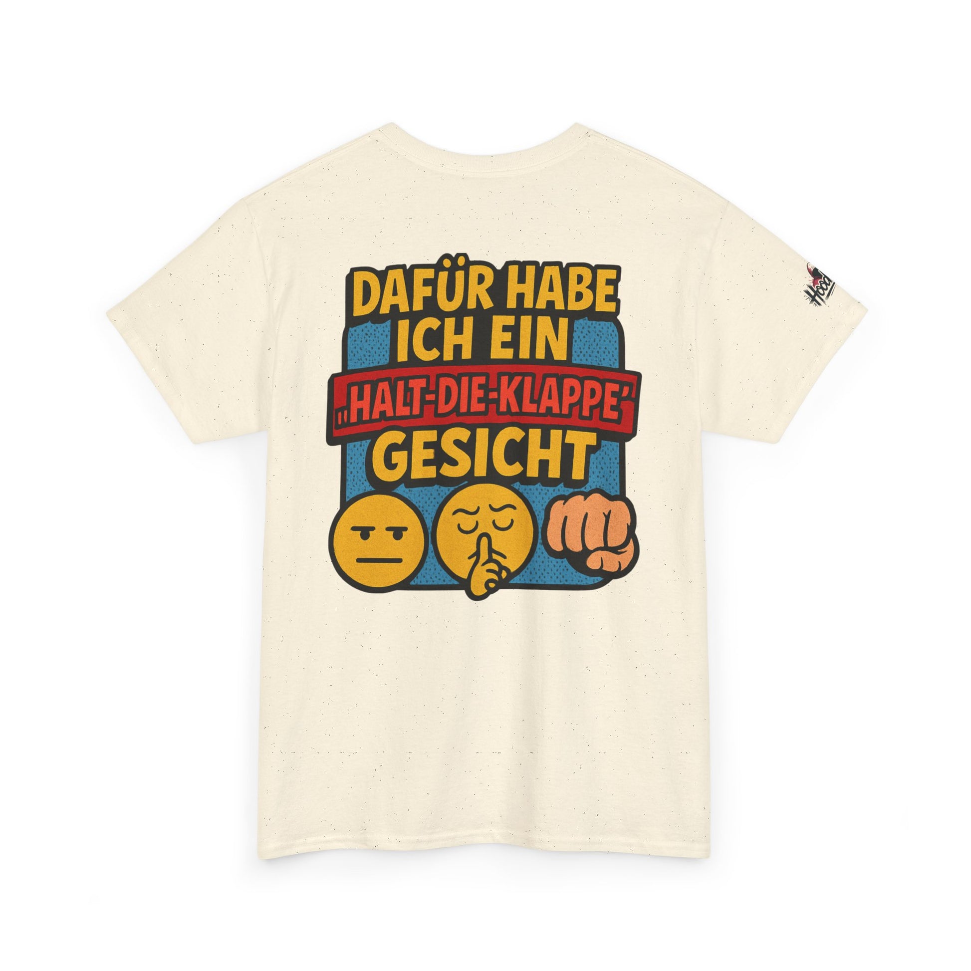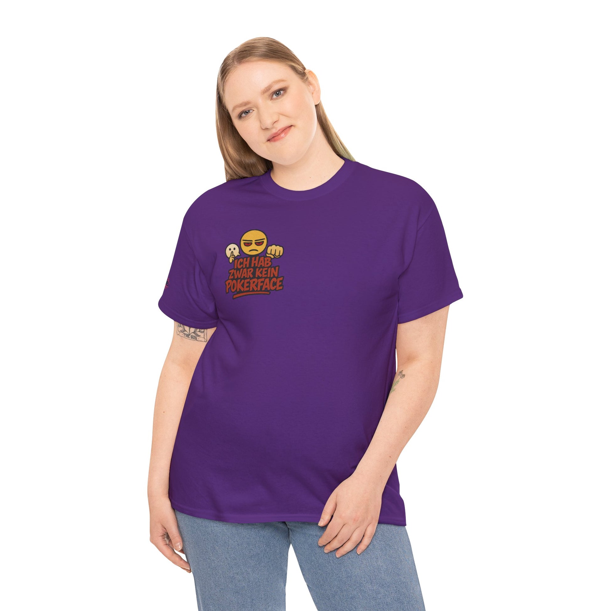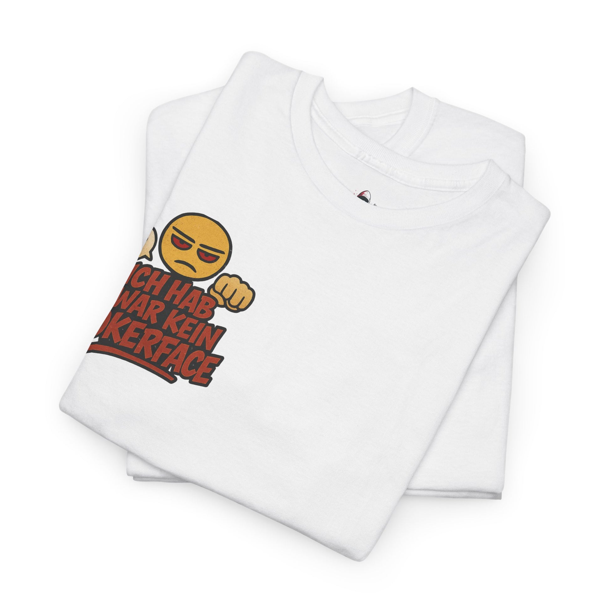 The statement is the focus:Β "Ich hab zwar kein Pokerface, dafΓΌr habe ich ein Halt-die-Klappe-Gesicht." This design is perfect for German speakers who appreciate sharp wit and self-aware sarcasm. It's a fun, comfortable, and unmistakable piece of wearable attitude.
